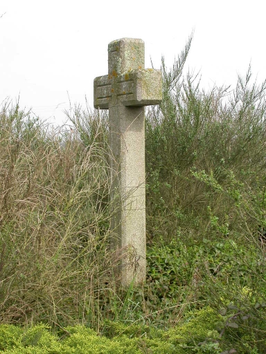 Cette croix est réalisée en granite ; ses bras et sa hampe sont légèrement chanfreinés. Une croix est figurée en creux sur le granite.