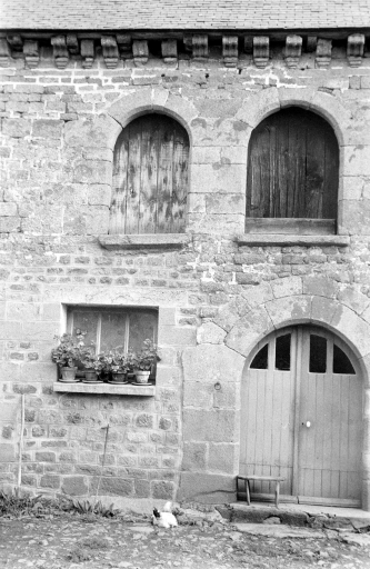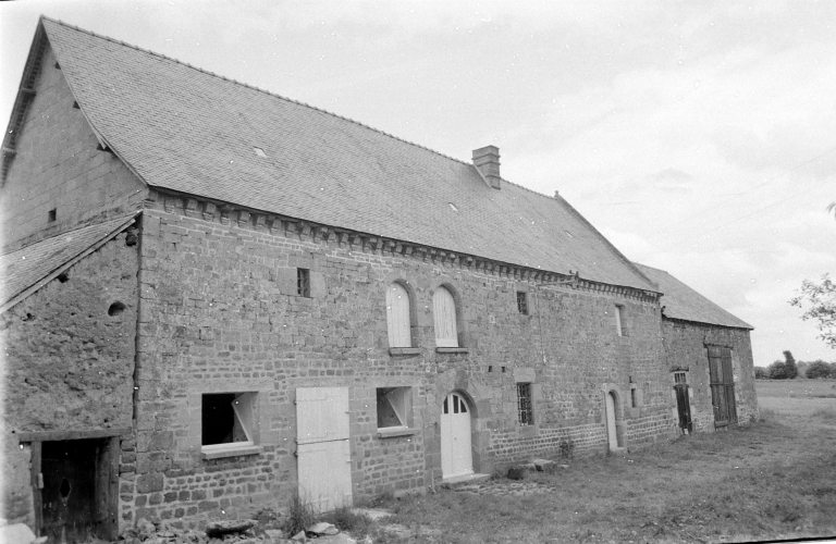 Cette ferme fait partie des édifices les plus intéressants et des mieux conservés de la commune. Hormis la transformation de l´étable en cuisine, les différentes parties et la distribution originelle sont encore en place et lisibles. Sa construction est datable du milieu du 17e siècle, portes en plein-cintre, consoles sculptées, cheminée. La salle d´environ 30m2 est pourvue d´une belle cheminée dont le linteau porte un blason sculpté d´un monogramme et d´une date probablement 1667. Un vaisselier mural fait face au foyer. De la salle on pouvait accéder aux étables situées à gauche et à une autre pièce froide à droite. Celle-ci est éclairée par une petite fenêtre dont l´ébrasement intérieur très important pourrait être un indice suffisant pour témoigner de l´utilisation de cette pièce en atelier de tissage. La propriétaire actuelle, a par ailleurs investie cette pièce à cet usage. La commune est proche de la ville de Bécherel qui s´est enrichie notamment par le commerce du lin et du chanvre. L´écurie mitoyenne au logis a conservé son ancien pavement et ses râteliers. Un fournil indépendant est aussi en place. Cet ensemble homogène constitue un exemple remarquable de logis à fonctions combinées à trois portes, la qualité de sa mise en oeuvre, le décor sculpté et la présence d´une chambre haute rendent compte d´une certaine aisance pour les fermes de l´époque.