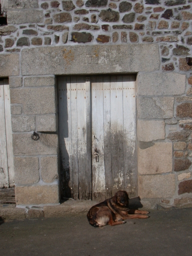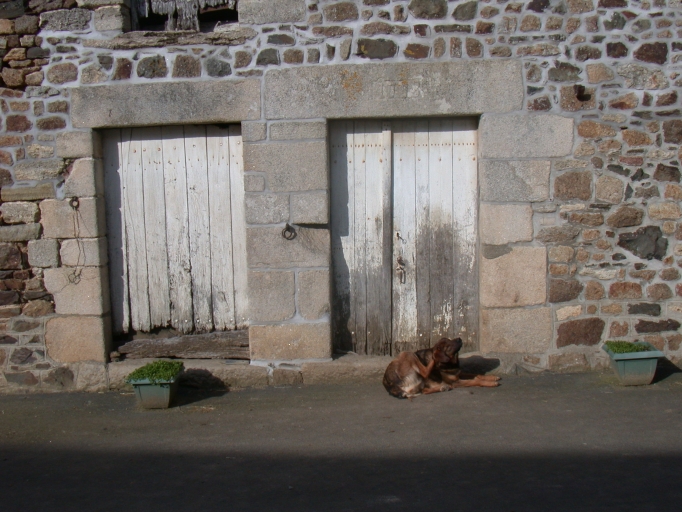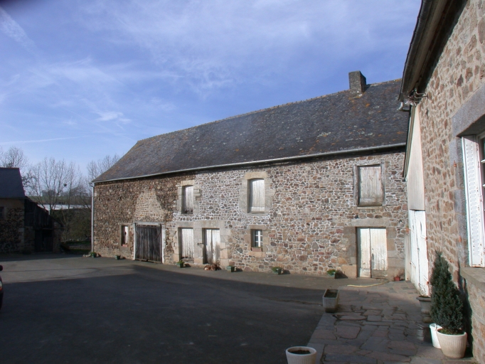 Logis à fonctions combinées croisées. Dit de parti haut par la présence d'un grenier en haut surcroît et d'une chambre à l'étage aménagée au dessus de l'écurie. Le logis est composé de trois pièces en rez-de-chaussée dont une seule est à feu. Elle est encadrée d'étables à gauche et d'une écurie à droite. Il conserve deux belles portes jumelées dont une datée de 1778. Gros oeuvre en moellons de granite. Encadrements des baies en calcaire coquiller. Logis plus récent construit actuellement dans la cour.
