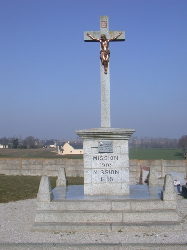En raison d'un manque de place et d'un problème d'insalubrité, le transfert du cimetière est décidé en 1927. Le 15 février 1930 a lieu l'expropriation des terrains de M Letellier. Les travaux d'aménagement, après transfert, débutent en décembre 1931 avec Simon Léon demeurant à Rouillé, entrepreneur du 1er lot, (murette, transfert du calvaire et du portail) et m. Loncle, entrepreneur du 2ème lot (pose d'un grillage métallique). Le calvaire édifié en 1874 a fait place probablement à ce nouveau calvaire construit pour la mission de 1908.
