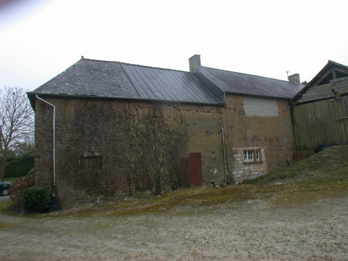 Logis à fonctions combinées, dit de parti haut par la présence d'un haut surcroît transformé en étage habitable. Gros oeuvre en moelons de granite en façade, murs secondaires mixte, pierrre et terre selon la technique de la bauge. Parties agricoles accolées et étables séparées. Inscription sur cadran solaire : FAIT PAR P.HAMON AN 1814 PIERRE DE NOYAL PERRINE DUBOIS.