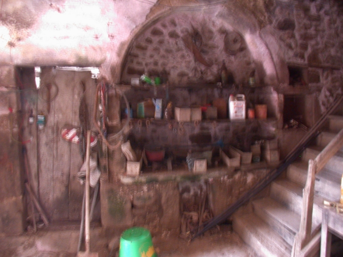 Malgré le mauvais état de cette ferme, elle conserve toutefois ses dispositions originelles datables du 18e siècle. La salle communique avec l'étable adjacente. D'une dimension d'environ 50m2, elle est chauffée par une cheminée à laquelle fait face un vaisselier mural. Un escalier situé dans l'angle permet de se rendre au grenier.