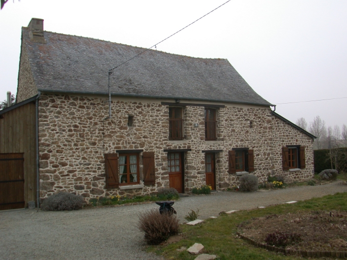 Logis à fonctions combinées, dit de parti haut, par la présence d'un haut surcroît ayant la valeur d'un étage habitable. A deux pièces en rez-de-chaussée. Vraisemblablement à une seule pièce à feu, une souche extérieure de cheminée. Organisation symétrique de la façade. Gros oeuvre en moellons de granite, linteaux des ouvertures en bois.