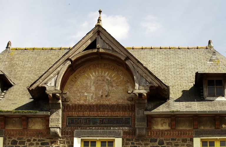 Bâtie en 1912, l'école de garçons, distante de moins de 100 mètres de l'école de filles, arbore un style tout différent, dû au changement d'époque. Le bâtiment abritait lui aussi à l'origine le logement des instituteurs, remplacé aujourd'hui par des bureaux et la bibliothèque municipale. La façade conserve l'inscription Ecole de Garçons en céramique, et une peinture peu lisible subsiste au fronton.