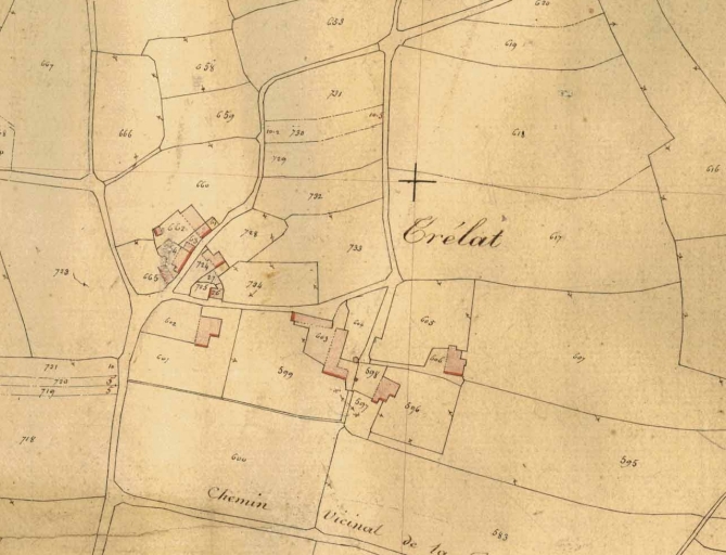 Ferme mentionnée sur le cadastre de 1834. Le logis conserve une ancienne cheminée en rez-de-chaussée pouvant remonter au 17e siècle. Le tout ayant été repris au 19e siècle. Ce logis constitue aujourd'hui l'habitation principale qui réunit autour d'une cour d'autres logis déclassés en dépendances. Le fond parcellaire a été modifié et l'accès nord supprimé. Après la dernière guerre, se regroupaient encore cinq familles autour de l´actuelle cour de ferme.
