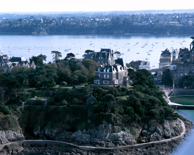 A partir de cette date et jusqu´au début des années trente, la ville ne va cesser de se développer et l´ancien bourg de Saint-Enogat, situé plus à l´ouest, finira par être complètement absorbé par l´extension de cette nouvelle ville qui prendra le nom, dès 1879, de Dinard-Saint-Enogat. Ainsi, au temps des découvreurs et de la villégiature modèle succède, dès les années 1870, le temps des investisseurs et des promoteurs. Joseph Rochaïd Dahdah, comte libanais en exil, arrive à Dinard en 1873. Cet homme entreprenant dispose de capitaux importants et va marquer par ses nombreux projets d´intérêt général l´urbanisation du centre-ville de Dinard (ind. n°3,14, 17,61). Il acquiert notamment de nombreux terrains dans la Vallée dont il va assainir le versant oriental. Albert Lacroix, quant à lui, investit à Saint-Enogat et construit à partir de 1875 le lotissement des Villas de la Mer (ind. n°6). C´est également en 1879 qu´Auguste Poussineau rachète le parc du Château de la Malouine au comte d´Audiffret Pasquier afin d´y installer un lotissement balnéaire de standing. Le développement de la station en plusieurs pôles est une des caractéristiques de Dinard qui ne possède pas de programme unitaire d´urbanisation comme à Paramé et à Saint-Lunaire. Néanmoins, la physionomie de la nouvelle ville s´est dessinée très tôt, puisque trente années ont suffi à en déterminer les différents quartiers.