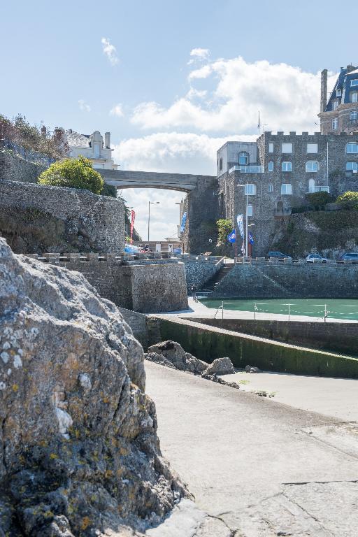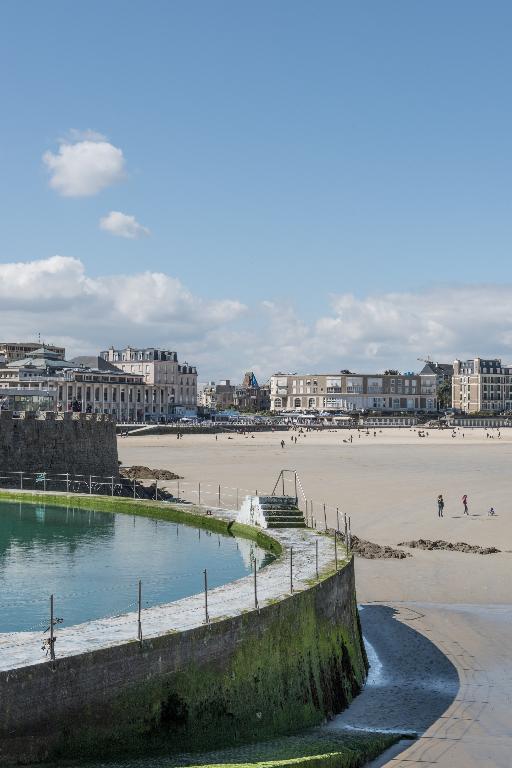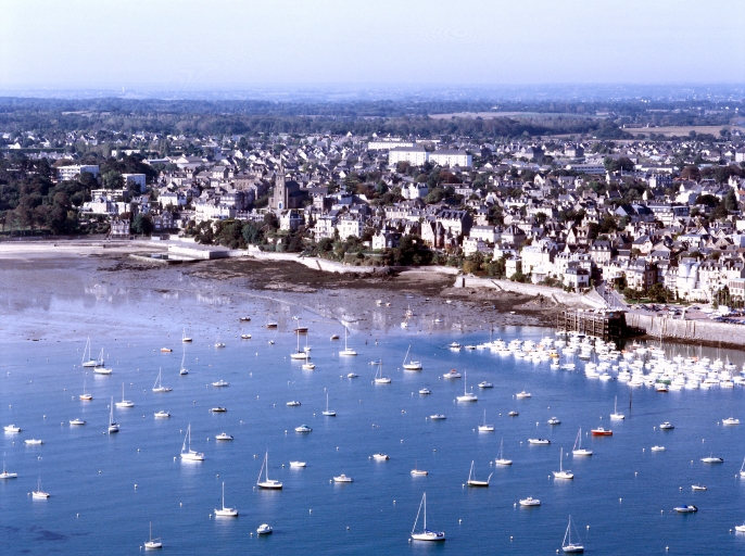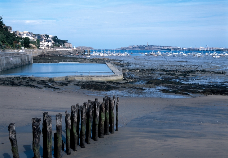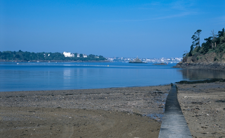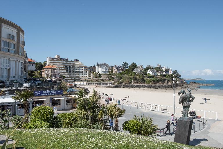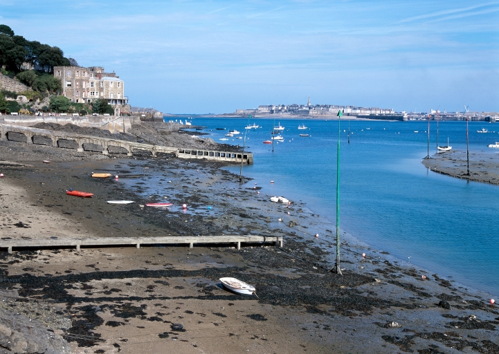 Dinard est la station phare de la Côte d´Emeraude. Sa réputation mondaine, la variété de son front de mer, découpé par de nombreuses pointes rocheuses et de petites anses sablonneuses qui s´étendent sur plus de six kilomètres de la Vicomté à Saint-Enogat, sa situation exceptionnelle entre Manche et Rance face à la ville historique de Saint-Malo ont participé, de tout temps, à sa notoriété. La côte est sur la Rance, qui borde la plage du Prieuré, est très abritée et bénéficie d´un climat assez doux qualifié parfois de méditerranéen par la variété des plantations qui prolifèrent sur les escarpements de la falaise aménagée en jardins privatifs. La côte nord sur la Manche, plus sauvage, plus typique du littoral de la côte d´Emeraude, s´étend de la Pointe du Moulinet à la Pointe de la Roche Pelée et regroupe les principales plages. La plage de l´Ecluse, située dans une anse profonde entre les pointes escarpées du Moulinet et de la Malouine, est le cœur de la station. Sur ses dunes de sable ou à proximité ont été construits la plupart des équipements balnéaires qui structurent la station : établissement de bains, casinos et hôtels de prestige. Quant à la plage de Saint-Enogat, éloignée de l´agitation du centre, elle demeure une annexe de la grande plage bien que plus ample et moins profonde. Elle est également encadrée de deux avancées rocheuses sur lesquelles viendront progressivement s´établir de nombreuses maisons de villégiature formant deux quartiers distincts à l´est et à l´ouest.
