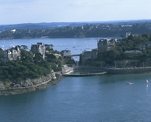 Comme à Saint-Malo, les anglais font partie des premiers estivants à s´installer dans la commune. Une plaque commémorative, située sur la promenade des Alliés, mentionne leur arrivée en 1836, date de l´installation du nouvel embarcadère à l´anse du Bec-de-la-Vallée. Vers 1840, le consul anglais, Alpyn Thomson, a fait partie de ces premiers découvreurs amoureux du site : il s´installe dans l´ancien prieuré des Trinitaires situé dans la baie du même nom, face à la ville fortifiée de Saint-Malo. Dix ans plus tard, il est suivi par Jean Sedgwich, puis par Robert Monteith, vice-consul, installé précédemment au château de Montmarin. Ces pionniers font partager les beautés du site à leurs amis anglo-saxons installés à Dinan et c´est ainsi que la famille Faber emménage dans la villa Beauregard avant de faire construire, en 1856, sa propre demeure, la villa Sainte-Catherine, sur le promontoire du Bec-de-la-Vallée. Vers 1860, parallèlement à l´installation progressive de l´aristocratie et de la gentry anglophone et étrangère, la municipalité conçoit le dessein d´une nouvelle ville, dans le secteur est de la Vallée. L´ancienne paroisse située à Saint-Enogat est déplacée dans l´anse du Prieuré, plus proche de l´embarcadère de Dinard. Ce nouveau centre, projeté autour de l´église récemment construite par l´architecte Lacroix, se trouve pourtant très vite éloigné de la station balnéaire. Si celle-ci n´est pas encore véritablement née, son développement est néanmoins pressenti autour de la plage de l´Ecluse. Sur les plans d´urbanisme de 1856 et de 1861, s´esquisse déjà le tracé du futur boulevard Féart, qui doit relier la place de l´Eglise à la grève de l´Ecluse où se situe le premier établissement de bains d´Edouard Legros, suivi bientôt par l´indispensable casino qui assoit rapidement la notoriété de l´endroit. Mais ce sont les préparatifs de 1868 liés à la venue manquée de l´empereur Napoléon III et de son épouse Eugénie qui ont lancé définitivement Dinard comme station balnéaire.