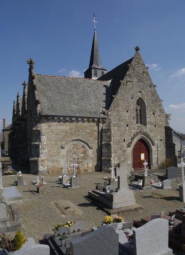 L'église montre une architecture complexe, aux volumes imbriqués, révélatrice des nombreuses campagnes de construction par lesquelles elle est passée. Erigée une première fois dans la seconde moitié du 15e siècle, elle garde de l'époque sa façade ouest et un chevet droit. Elle est reconstruite entre 1527 et 1555 dans le style vitréen, à pignons multiples, très prisé au 16e siècle. Quatre chapelles viennent alors se greffer sur le flanc nord de la nef : leurs pignons sont amortis de quadrupèdes. Sur le flanc sud existent une autre chapelle et une tour monumentale édifiée en 1575, surmontée d'une flèche en ardoise. Le chevet, qui arbore une grande fenêtre flamboyante, est enrichi, toujours au 16e siècle, d'un vitrail retraçant la passion du Christ. Une sacristie achève la construction en 1675.
