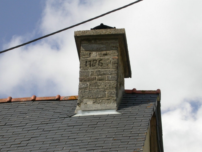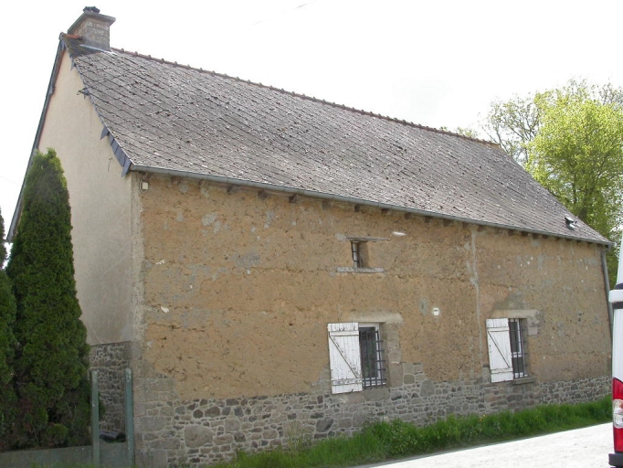 Cette ferme est construite en moellon de granite et de schiste jusqu'au premier niveau puis en terre enduite. Les encadrements des ouvertures sont en grand appareil régulier de granite au rez-de-chaussée et étaient en bois à l'étage. La façade est percée d'une porte en plein cintre avec une feuillure quart de rond, d'une fenêtre transformée qui conserve les piédroits extérieurs avec chanfrein. La souche de cheminée porte la date 1786.