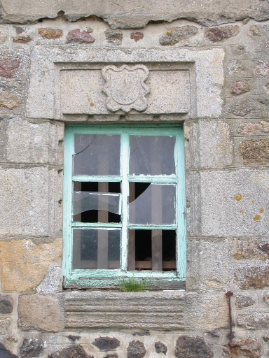 Cette ferme est construite en moellon de granite, le haut des murs est en terre recouverte d'un enduit. La façade est percée d'une fenêtre avec un appui mouluré, chanfrein sur les piédroits et un écusson sur le linteau. Le toit est très pentu et la corniche en bois à des modillons sculptés.