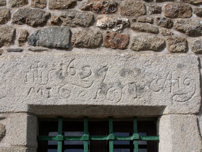 Cette ferme possède un logis construit au début du 17e siècle comme l'indique une date portée sur le linteau d'une fenêtre au rez-de-chaussée : IHS 1621 et une inscription. Ce logis se compose au moins de deux pièces à feu au rez-de-chaussée, chacune éclairée par une fenêtre grillée. Une des salles, celle où se trouve l'inscription et la date, possède une cheminée en granite avec corniche saillante et un grand vaisselier en granite avec un petit lave-main accolé. L'autre salle possède une belle grille avec des fleurs de lys. Il se peut également qu'il y ait eu une chambre à l'étage. En effet, on retrouve une belle fenêtre à l'étage avec appui saillant et linteau sculpté en accolade et inscriptions. Tous ces éléments architecturaux, auxquels s'ajoute la belle corniche en calcaire sculptée, attestent de l'aisance des propriétaires. Il ne s'agissait donc pas à l'origine d'un logis de ferme, mais peut-être celui d'un marchand ou d'un tisserand de lin, métier très présent à La Baussaine.