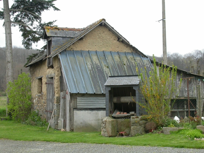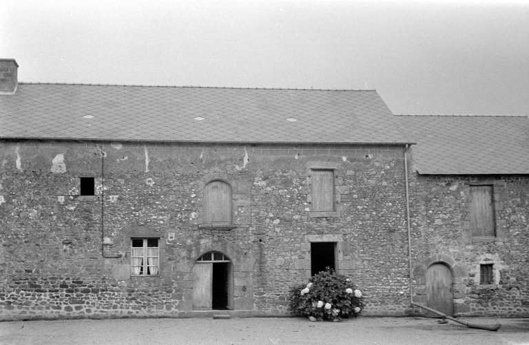 Cette ferme est construite en moellon de granite. Le haut des murs a été rehaussé en terre enduite. La façade était percée de trois portes en plein cintre avec chanfrein, d'une gerbière plein cintre avec chanfrein, d'une fenêtre grillée avec chanfrein et de deux fenêtres avec feuillure. La cheminée a un chanfrein sur les piédroits avec deux visages. Le linteau de la fenêtre disparue portait la date 1658.