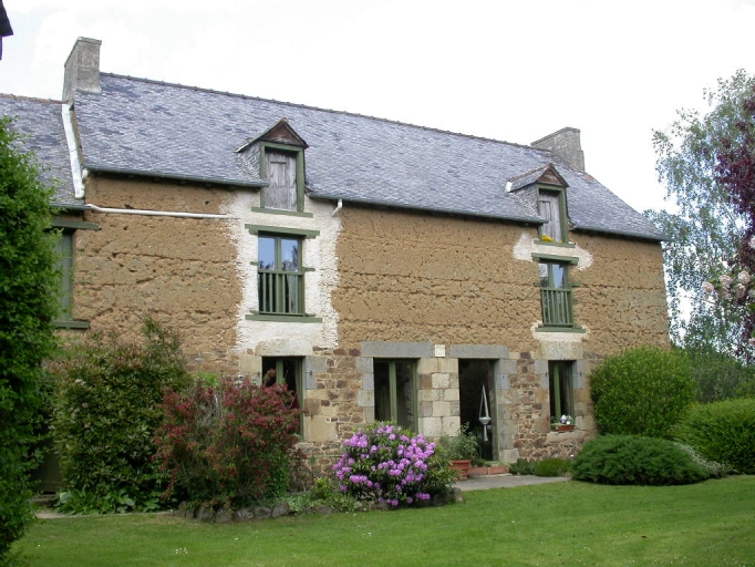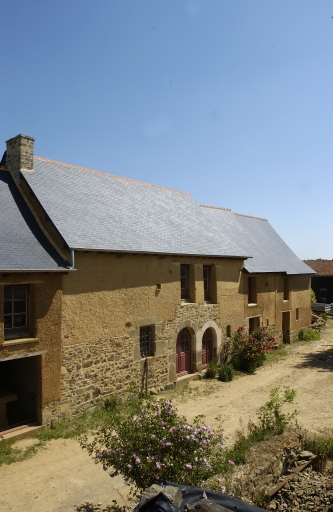 Un des aspects fondamentaux et caractéristiques de l´habitat rural sur ce territoire consiste en une mise en oeuvre variée des matériaux associant du granite, parfois du schiste et de la terre. Cette mise en oeuvre mixte de la pierre et de la terre, utilisée selon la technique de la bauge, est différente selon les logis et parfois selon les époques. Plusieurs formules ont été rencontrées, parmi les plus récurrentes, soit la répartition des matériaux est irrégulière sur une même façade, soit la façade principale est édifiée entièrement en pierre tandis que les murs latéraux et arrière sont en bauge. Les façades levées entièrement en terre sur un solin de pierre sont plus tardives et datent du 19e siècle, comme la ferme, les Petits Bois. Cette mixité de mise en oeuvre se retrouve également dans l´agencement des portes et des fenêtres. Il n´est pas rare en effet de retrouver sur une même façade des linteaux en pierre et des linteaux en bois. Ceux-ci ne correspondent pas toujours à des modifications du bâti, mais bien à un parti originel privilégiant les conditions pratiques et économiques au détriment de principes plus esthétiques. Quelques cas de décors, portes, fenêtres, souches de cheminées, corbelets emploient du calcaire coquiller provenant des carrières voisines du Quiou en Côtes d´Armor. Cette pierre plus facile à tailler a permis de beaux décors sculptés et se retrouve toutefois dans les logis les plus notables de la commune, dans les châteaux de Tourdelin et de Saint-Thual, mais également à Trésoleil, à la Pommerais et à la Chapelle aux Grignards.