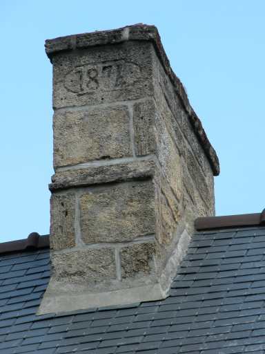La ferme construite en 1874 a fait l'objet de profonds remaniements à la fin du 20e siècle notamment avec le remploi de portes jumelles en pierre de taille du 16e siècle de provenance inconnue.