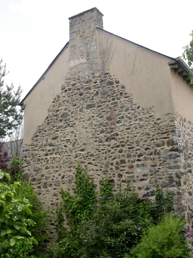 L'ancien presbytère est un bâtiment qui possède un plan en T renversé. Ainsi, il existe un corps de bâtiment principal, possédant une façade au sud et, au nord, se trouve une autre aile. Ce bâtiment est construit en moellon de schiste ; la partie arrière a été rehaussée en terre ; la trace de l'ancien pignon, très pentu, est en effet encore visible. La souche de cheminée qui se trouve sur l'aile nord porte la date de 1728. La façade sud est rythmée par trois travées de baies qui possèdent des linteaux en bois. Au sud du presbytère, deux bâtiments en terre ferment la cour ; il s'agit d'un fournil à l'ouest et d'étables et d'écuries à l'est. L'ensemble est clos de murs et fermé par un portail dont les piliers sont en calcaire du Quiou. Le pilier ouest porte une croix.