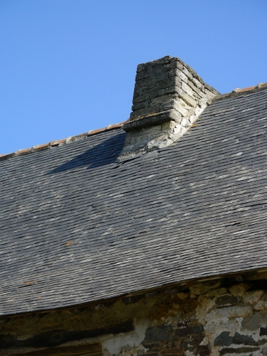 Édifice de plan allongé comportant deux pièces à feu et un cellier au rez-de-chaussée, des greniers et une chambre au 1er étage ainsi que des greniers dans le niveau de comble. Porte haute en plein cintre ; fenêtres à encadrements de pierre de taille de granite avec linteaux ornés d'une accolade. Maçonnerie de moellon (appareil mixte) et terre. Toiture à croupe couverte d'ardoise. Partie centrale remontée.