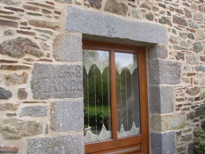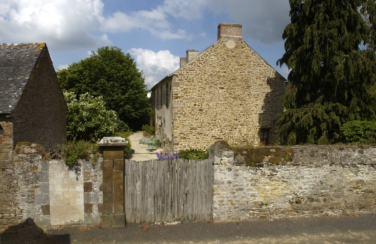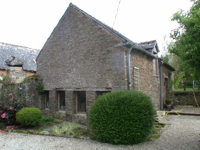 Plan rectangulaire. Un étage carré. Gros oeuvre en moellons de granite et de schiste recouvert partiellement d'un enduit. Remploi d'anciennes pierres en façade arrière. Une d'entre elles porte la date de 1648, une autre un soleil avec blason non identifié, vraisemblablement un ancien cadran solaire.