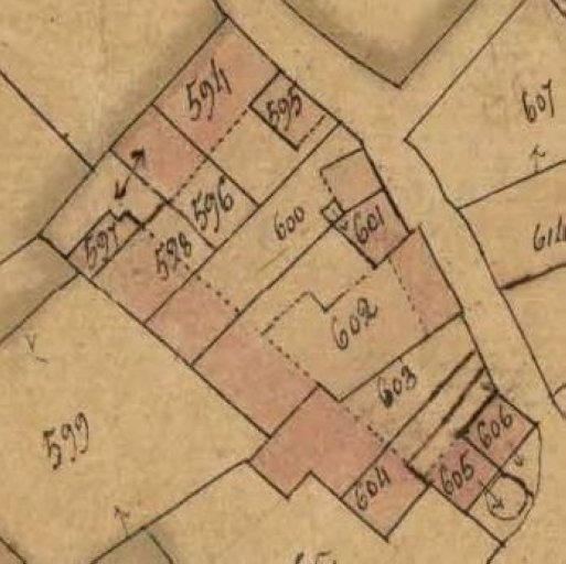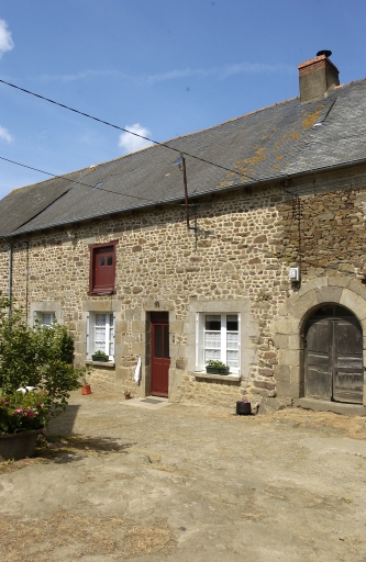 Cet alignement datable des 16e et 17e siècles est mentionné sur le cadastre de 1834. Les divisions de parcelles, à cette époque, indiquent la présence de plusieurs foyers d'habitation dont 5 ont été aujourd'hui identifiés. Un des logis est particulièrement intéressant et plus soigné que les autres dans sa mise en oeuvre. Sa porte en plein cintre est accolée d'une petite fenêtre dont le linteau est sculpté d'une accolade. La fenêtre de l'étage possède également un appui mouluré. Deux assises en pierre de taille de calcaire sous la toiture longent aussi la façade. Deux cours partagent actuellement cet ensemble. Les affleurements de granite sont ici très visibles et apportent une note rude et authentique à ce patrimoine rural.