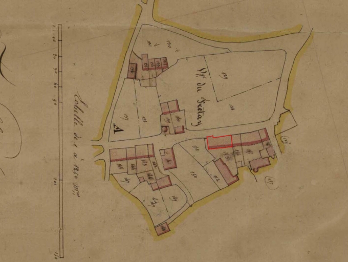 Plan géométrique parcellaire de la commune de Plesder, section A1 dite du Bourg, levée par Viel géomètre, [1834], échelle 1/2500e (A. D. d'Ille-et-Vilaine : 3P 5451).