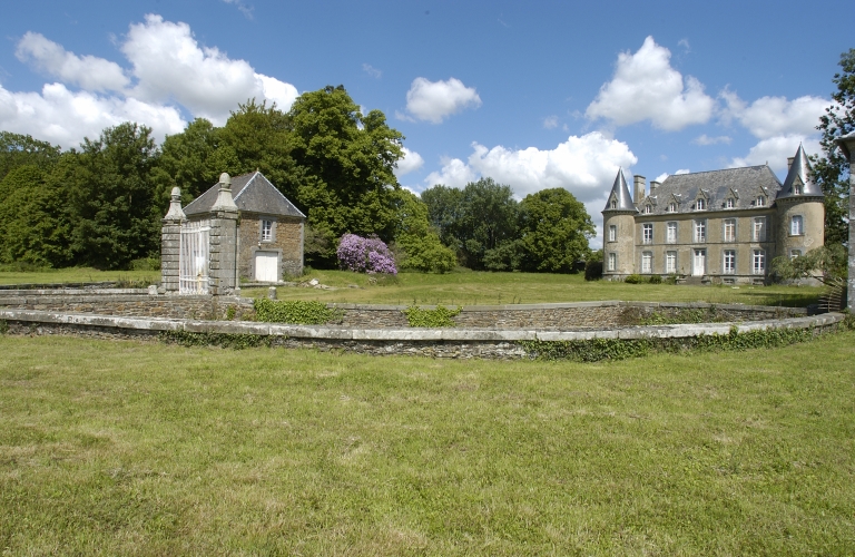 Pleugueneuc. Château du Gage, avant 1860, dessin de H. Frotier de la Messelière d'après un tableau conservé dans le château actuel. In BANÉAT, Paul. Le Département d'Ille-et-Vilaine, histoire, archéologie, monuments. Rennes : Librairie Moderne J. Larcher, 1927-1929, 4 vol.