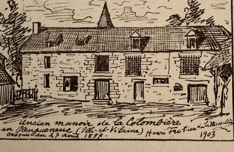 La Colombière, dessin de 1895 par Frotier de la Messelière. In FROTIER DE LA MESSELIÈRE, Henri. Le Guide de l'Ille-et-Vilaine ; guide historique, guide touristique. nlle éd. [1907]. Plouagat : GP Impressions, 1994.