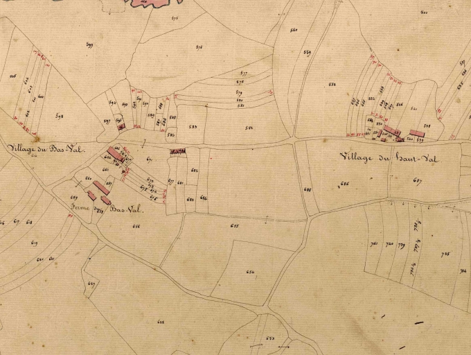Hameau-écart constitué de deux modestes groupes d'habitats ; l'un au Bas Val est partiellement abandonné.