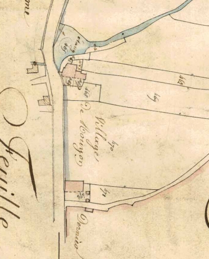 Tinténiac. Section C3, dite de Trignoux, en quatre feuilles, 3ème feuille, dessin, échelle 1/2500, Declaye aîné géomètre, 1836 (A.D. 35).