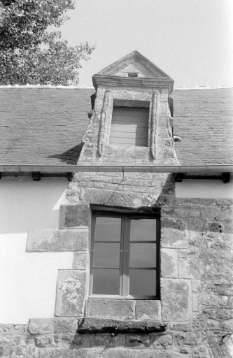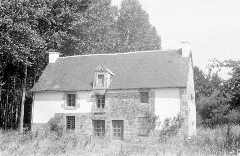 Edifice de plan rectangulaire ; 1 étage carré ; comble. Maçonnerie de moellon de granite avec encadrements de baies et chaînes d'angle en pierre de taille et en terre enduite. Portes jumelées dont l'une est surmontée d'un linteau portant l'inscription : I : BELLIER / 1666. Fenêtre à grille. Lucarne du comble en pierre avec encadrement mouluré et fronton triangulaire. Toit à longs pans ; couverture en ardoise.
