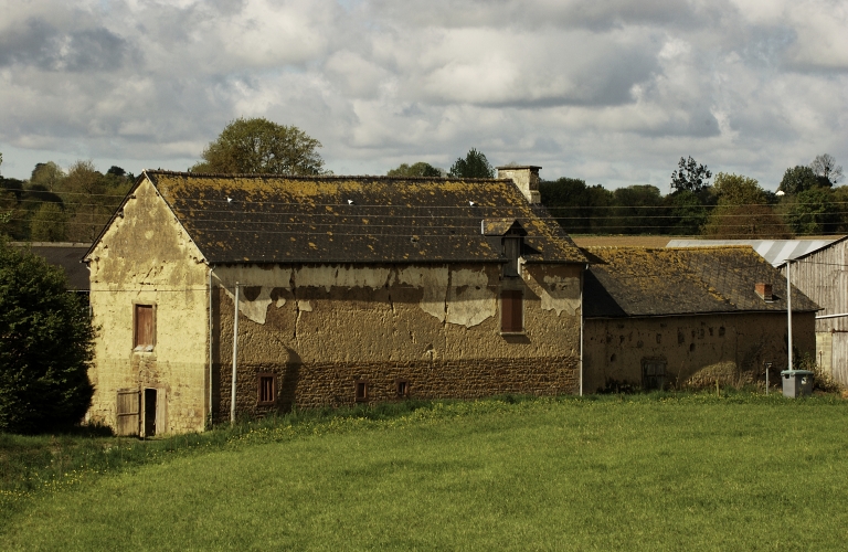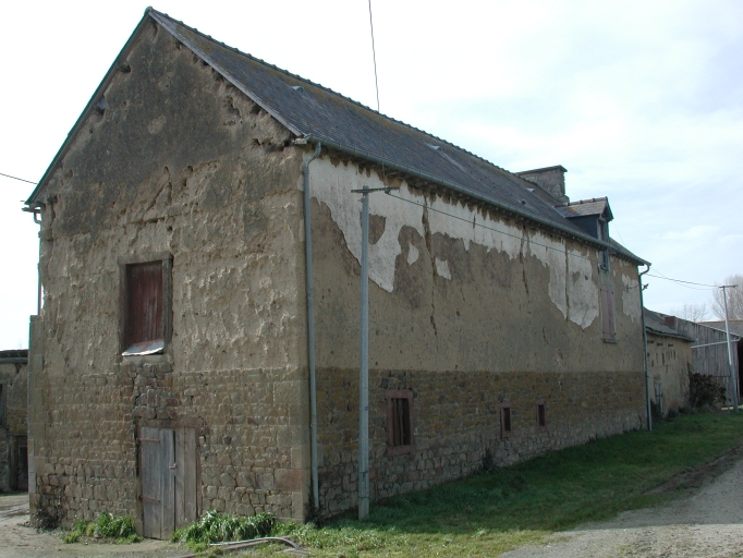 Edifice de plan rectangulaire. Elévation de la façade principale en moellon de granite avec encadrements de baies et chaînes d'angle en pierre de taille et partie supérieure en terre ; date portée illisible sur la souche de cheminée. Elévation de la façade postérieure en terre au-dessus d'un haut solin de moellon. Toit à longs pans ; couverture en ardoise. Parties agricoles en alignement et au sud.