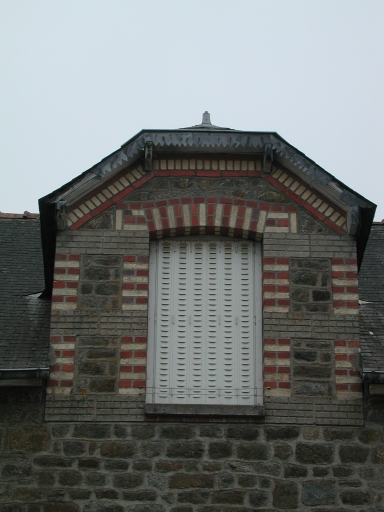 Plan rectangulaire. Maçonnerie de moellon de granite avec encadrements de baies, chaînes d'angle et décor en brique polychrome. Toit à croupe ; couverture en ardoise.