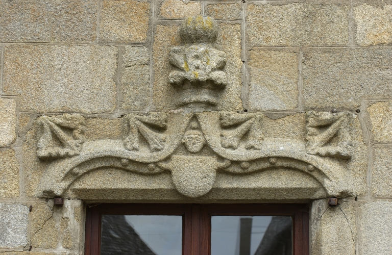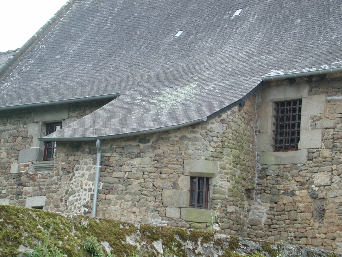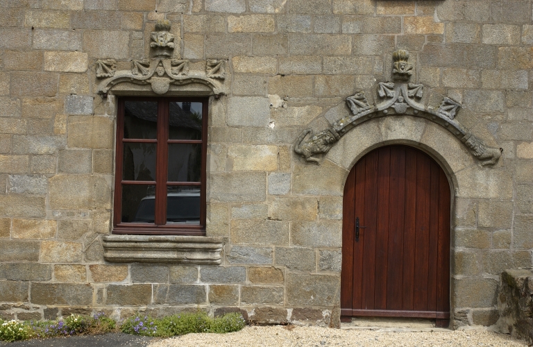 Edifice de plan rectangulaire avec tour d'escalier circulaire hors-oeuvre placée au centre de la façade postérieure. Maçonnerie de moellon de granite avec encadrements de baies et chaînes d'angle en pierre de taille pour la façade postérieure et les pignons. Façade antérieure en grand appareil de pierre de taille ; appuis de fenêtre saillants et moulurés ; porte en plein cintre et fenêtre latérale nord surmontées d'accolades en relief ornées d'un personnage portant un écusson, de motifs de feuillage et de lions. Pignons découverts ornés d'un animal assis en ronde-bosse. Toit à longs pans ; couverture en ardoise.