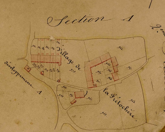 Commune de Québriac. Section A, dite de LA VILLE-THEBAULT. En deux feuilles. 2ème feuille, dessin, échelle 1/2500, [s.n.], [1836] (A.D. 35).