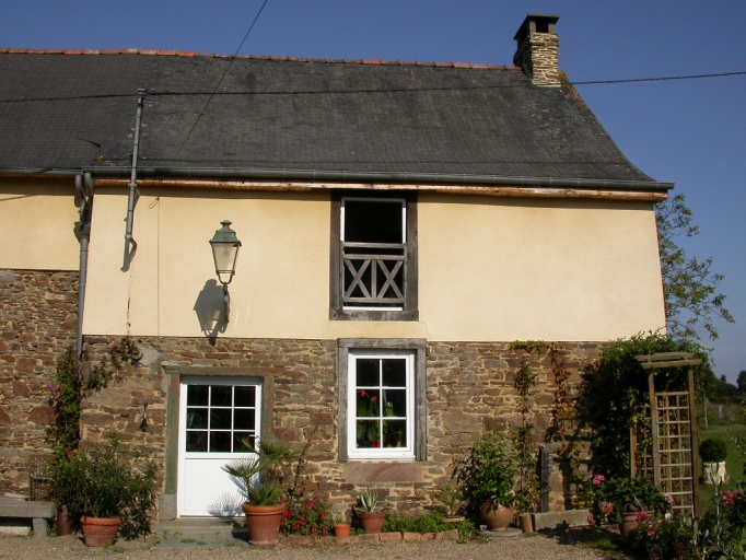 Cette ancienne ferme se compose de deux logis construits à des époques différentes. Celui de gauche, date du 17e siècle, il s'agissait d'un logis-étable. A droite, une date sur la cheminée indique 1844. Celle-ci correspond bien à la poutraison et aux carrées de bois des ouvertures.