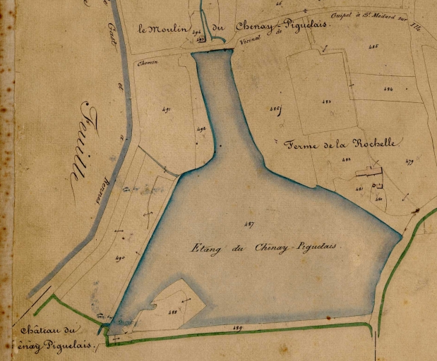 L'écart du Chesnay-Piguelais se compose du domaine de la seigneurie du même nom, c'est-à-dire le château, la chapelle, les deux fermes et le moulin. Cet écart a conservé la structure qu'il avait lors de la levée du cadastre napoléonien en 1835.