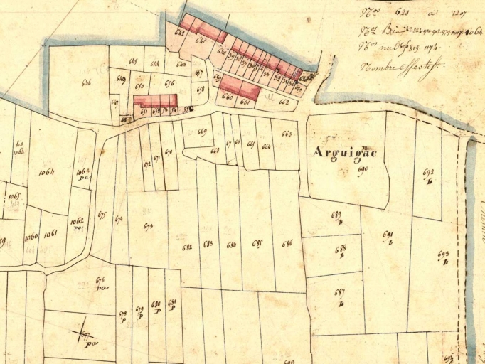 Aucun ouvrage visible aujourd'hui à Arguignac ne remonte au-delà de 1850. Pourtant, quelques pierres remployées dans des constructions contemporaines peuvent être datées du 17e siècle, voire du 16e siècle.