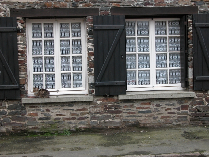 Ensemble de deux maisons situées à l'aplomb de la rue. L'une est dite de type élémentaire à une seule pièce à feu et grenier au-dessus ; l'autre était autrefois à fonctions combinées c'est à dire avec deux portes extérieures en rez-de-chaussée l'une menant à une pièce à feu, l'autre à un cellier ou une étable, des greniers étant situés au-dessus. Cette distribution n'est plus en place. Orientation ouest sur la rue. A noter une niche à statue de la Vierge.