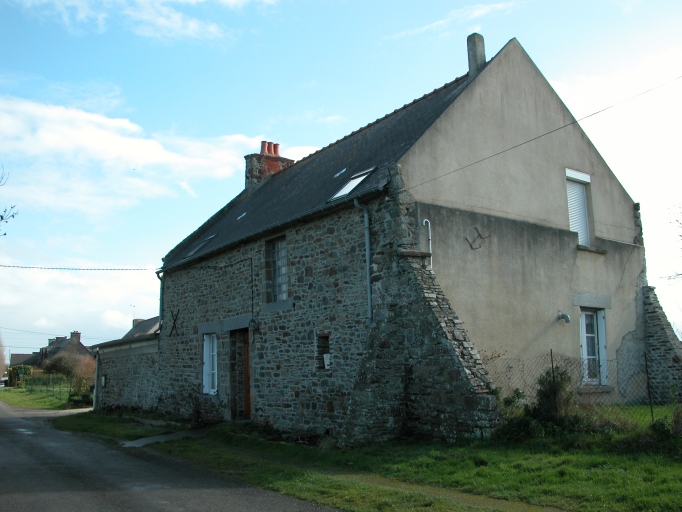 Implantation en bordure de chemin. Maison élémentaire à une pièce à feu et grenier au-dessus. Pignon découvert. Orientation nord.