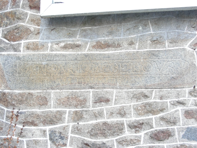 Maison construite en moellon de granite avec encadrements des ouvertures et chaînage des angles en pierre de taille de granite. Inscription sur une pierre du pignon : Bâti par L LEBELOUR AN L'AN 1784. Cellier en appentis postérieur.
