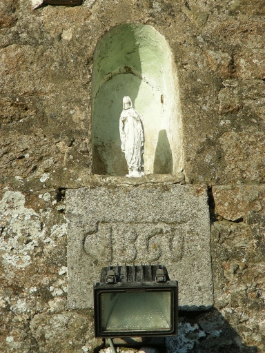 Ferme construite en moellon de granite avec encadrements des ouvertures en pierre de taille de granite. Une fenêtre est en brique. La façade est ornée d'une niche à statue sous laquelle une pierre porte la date de 1860. Cellier en appentis postérieur et soue à cochons en appentis latéral.