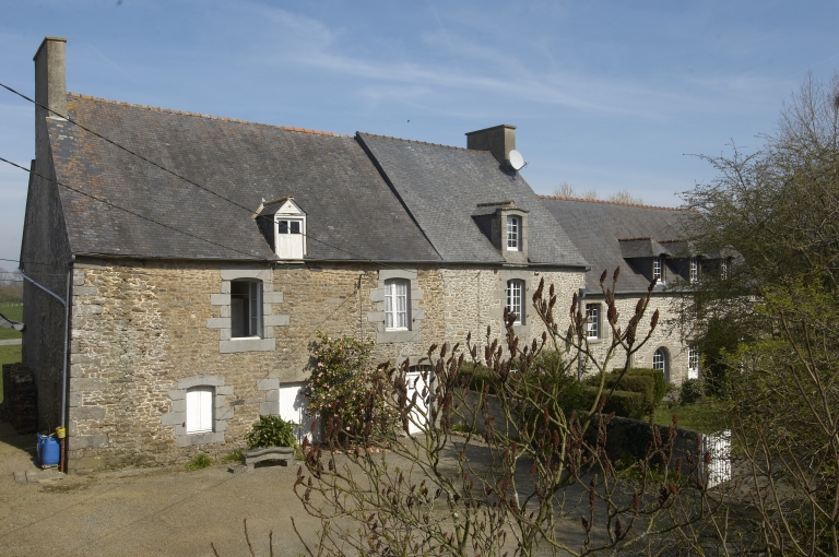 Maçonnerie en petit appareil irrégulier de granite. Ouvertures en gros appareil régulier de granite avec linteau cintré. La façade de la dépendance accolée est percée d'une porte en plein cintre et d'une petite fenêtre chanfreinée. L'autre dépendance a des ouvertures avec linteau en bois, dont un porte une date : 1718.
