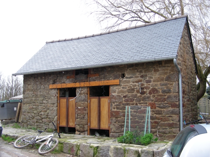 Maison construite en moellon de granite de Lanhélin avec encadrements des ouvertures et chaînage des angles en pierre de taille de granite. Ancien logis construit en moellon de granite avec ouvertures chanfreinées dont une porte en plein cintre, les fenêtres ont des linteaux en bois et les lucarnes sont en brique.