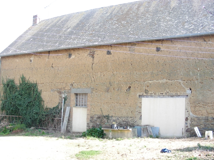 Ce bâtiment est construit en terre, selon la technique de la bauge, sur un solin en moellon de granite et de schiste. Son versant ouest est couvert en ardoise, tandis que celui de l'est est couvert de tôle ondulée.