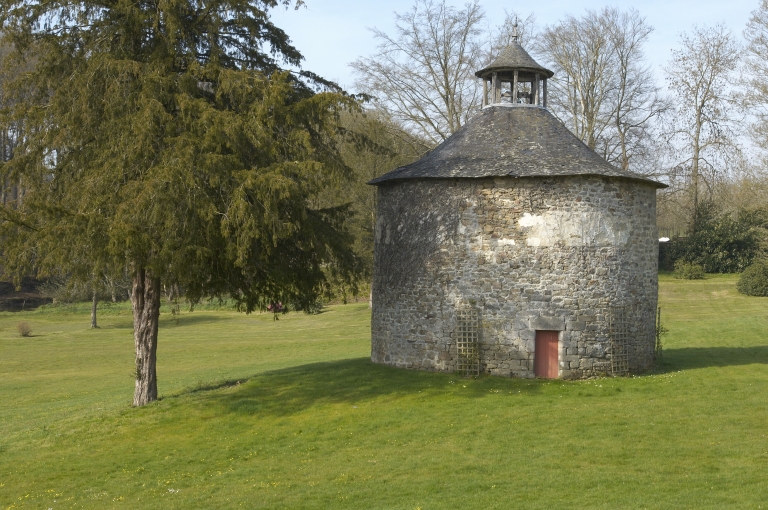De type cylindrique, il est construit en moellon de schiste et de granite, et est couvert en ardoise avec un lanternon qui a une cloche fixée à sa base visible de l'intérieur. Le lanternon est surmonté d'un très bel épi de faîtage, avec une fleur de lys à la partie supérieure et une tête de lion à la base et sur les quatre faces. Les trous de boulin sont répartis à l'intérieur tout autour par rangées superposées et en quinconce. Il est situé au sud-ouest de la malouinière vers le bord de l'étang.