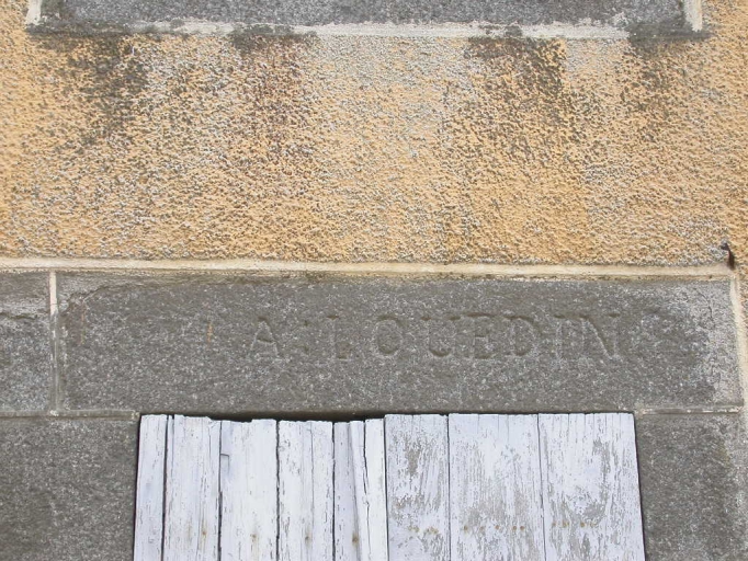 La maçonnerie de ce bâtiment est enduite, toutefois, les encadrements de baies sont en pierre de taille de granite. Le toit à longs pans est couvert d'ardoise. Les linteaux de la porte et de la fenêtre témoignent de l'inscription suivante : I : M : CHAPRON : 1844/A : LOUEDIN.