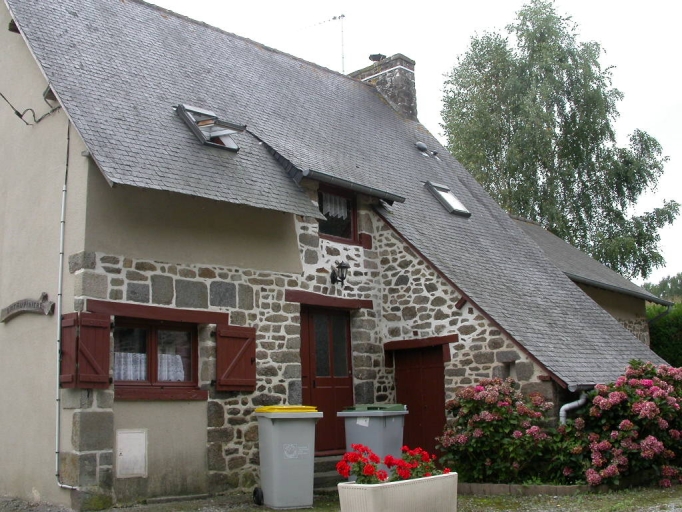 Une partie de la maçonnerie de ce bâtiment est composée de moellon de granite, l'autre partie est enduite. Le toit, qui possède une forte pente, est couvert d'ardoise. A l'arrière du logis, se trouve une dépendance dans un appentis postérieur.
