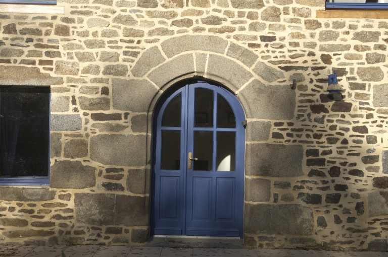 Ce bâtiment est élevé en moellon de granite et de schiste et possède un toit à longs pans couvert d'ardoise. Le rez-de-chaussée est surmonté d'un comble à haut surcroît accessible grâce à la présence de portes hautes. Les encadrements de baies sont en granite ; la porte présente un arc en plein cintre à double rouleau. Cette porte conserve une ferrure témoignant de l'existence d'un husset.
