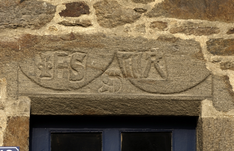 Ce bâtiment possède une maçonnerie en moellon de granite et de schiste ; le toit à longs pans est couvert d'un matériau synthétique. Les baies de la façade possèdent des encadrements en pierre de taille de granite. Ceux du rez-de-chaussée présentent un décor abondant. Ainsi, le linteau de la porte témoigne de l'inscription IHS. La fenêtre de la partie sud de la façade possède par ailleurs un appui saillant. Le linteau de la baie de la partie nord de la façade porte la date 1758 ainsi qu'une inscription difficilement lisible (AUGUSTIN RENAUT ?).