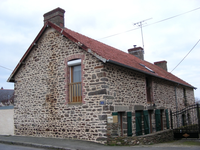 Ce bâtiment possède une maçonnerie de moellon de granite et de schiste ; il est par ailleurs couvert d'un toit à longs pans en tuile mécanique. Les encadrements de baies de la façade ainsi que les chaînages d'angle sont réalisés en pierre de taille de granite. Une fenêtre du pignon ouest possède quant à elle un encadrement en brique.