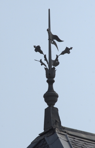 Cette maison est construite en moellon de granite et de schiste, toutefois, sa façade sur rue est enduite. Le bâtiment possède une cave, deux étages ainsi que des combles. Le toit à croupes est couvert d'ardoise et surmonté d'épis de faîtage. La façade est rythmée par trois travées, composées de baies quadrangulaires. Les ancres qui se trouvent sur les deux souches de cheminées forment la lettre "B". L'ensemble est clos par une enceinte composée de grilles et de murs.